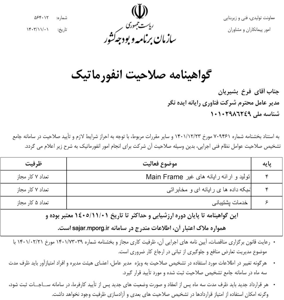 گواهینامه ها و افتخارات